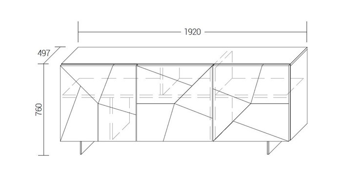 192 x 49.7 x h 76 cm 3 Türen, Holz-Einlegeboden und Innenraum, der für die Platzierung von Flaschen so bemessen ist