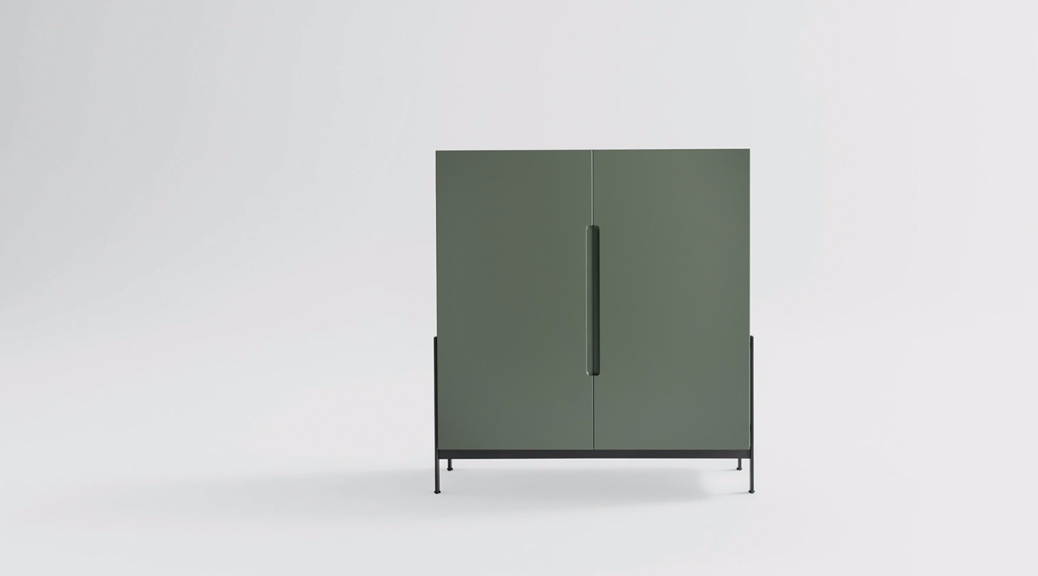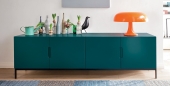 Das Sideboard Flat wurde vom Studio Zaven geplant und setzt auf spielerische Weise das Konzept von Stützen und Aufbewahren um. Es ist in allen matten Lackfarben und in drei Varianten erhältlich – quadratisch sowie rechteckig in einer hohen und einer niedrigen Version mit zwei, drei oder vier Türen.