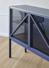 Erhältlich in zwei verschiedenen Höhen und Größen, erzählt er Geschichten von häuslichem Leben durch die Interaktion mit der Transparenz des Rauchglases, mit der LED im Inneren des Anrichtetisches. Es ist theatralisch, szenisch, bringt das Volumen der antiken Möbel in Richtung der zeitgenössischen.