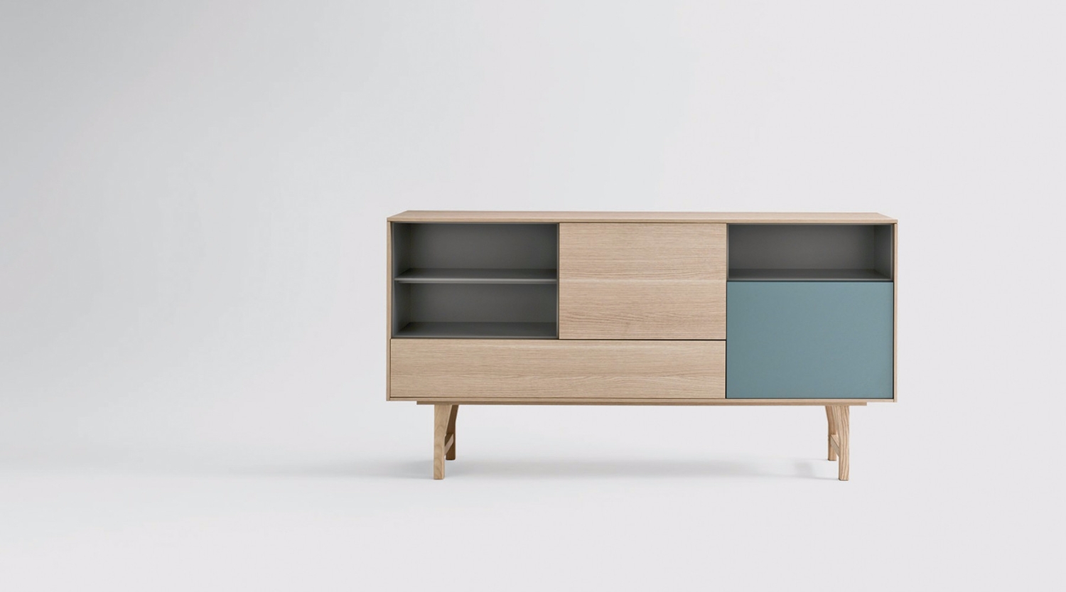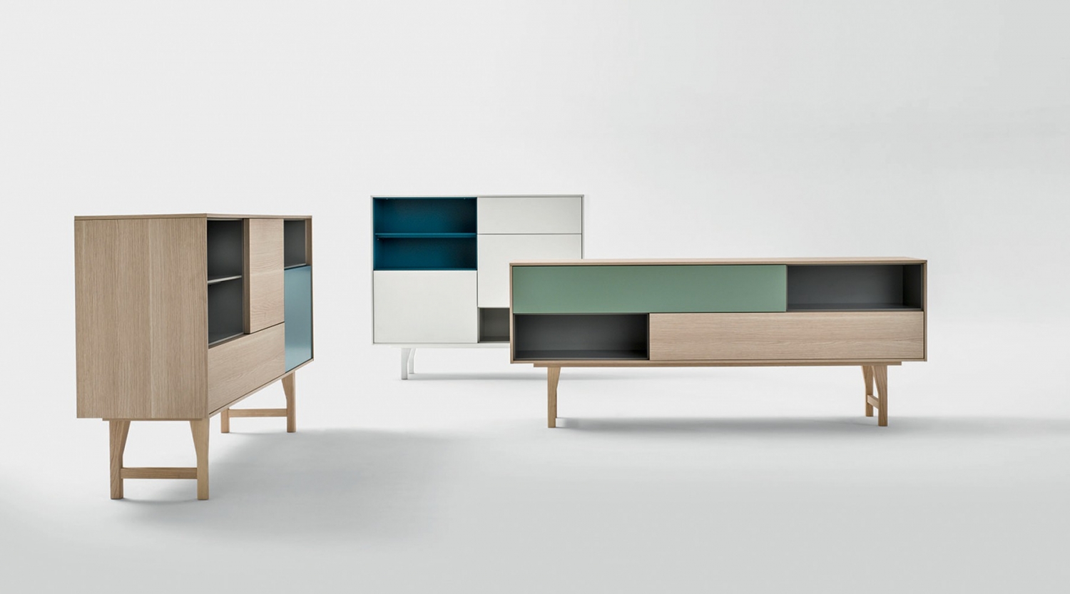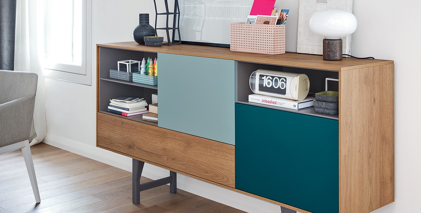 Das Sideboard Kuri wurde vom japanischen Designer Makoto Kawamoto entworfen und ist ein farbig gestaltetes Stauelement, welches in drei Größen angeboten wird. Korpus und Fronten sind in Rover Cognac, Rover naturale und matt lackiert erhältlich. Die offenen Fächer können matt lackiert werden und die Beine in den Farben Rovere naturale gestaltet oder matt, offenporig lackiert werden.
