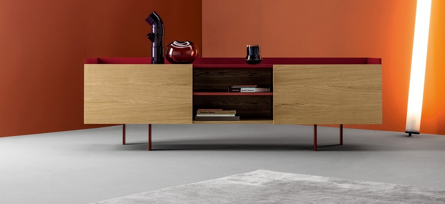 Das Sideboard Tratto überzeugt mit ebenso schlichten wie raffinierten geometrischen Formen, einem spannenden