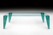Unnachahmlicher Entwurf, eine wirklich einzigartige Kreation: Atlas, der Cochtisch aus der Kollektion von Fiam. Tischplatte aus gebogenem Glas und Tischbeine aus handbehauenem Glasteile, die aufeinander geklebt sind. Atlas, der Couchtisch von Fiam.