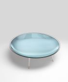 Tabelle besteht aus einer klaren Glasplatte auf gekrümmten Glasbasis 10mm konkave Rückseite silber ruhen, erhältlich in verschiedenen Ausführungen.Haben sie feste 4 abnehmbaren Beinen weiß oder schwarz lackiert, mit gebürstetem Stahl Füße.