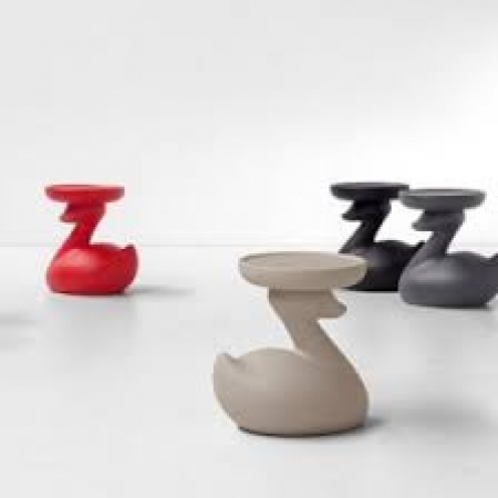 Der surreal wirkende, aber überzeugend funktionelle Beistelltisch Theduck ist ein ironisch-witziger Verweis auf das entsprechende Haustier. „Das Bild einer treuen Ente neben dem Sofa, die einen kleinen Tisch auf dem Kopf trägt, damit wir dort jederzeit unsere Fernbedienungen, Smartphones, Bücher und Zeitschriften ablegen können, erschien mir so absurd und ungewöhnlich, dass ich sofort davon begeistert war“, erläutert Alessandro Busana schmunzelnd. Dank der breiten Auswahl an verfügbaren Farben, der Ausführung mit Beleuchtung und dem zweifellos exzentrischen Design eignet sich Theduck als ebenso originelles wie funktionelles Element für alle Bereiche des Hauses – sei es im Wohnbereich oder Badezimmer, im Schlafbereich oder Garten