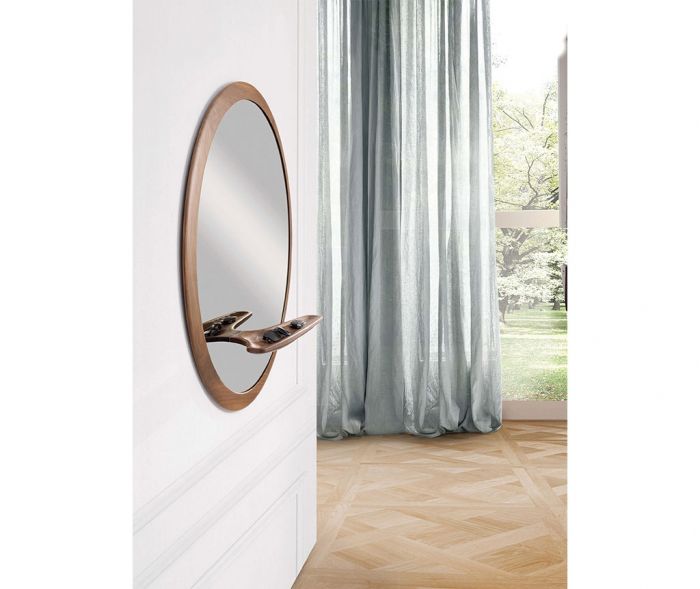 Das schöne und notwendige Zubehör: der Spiegel. Mirage ist der Wandspiegel signiert Pacini & Cappellini, der zur