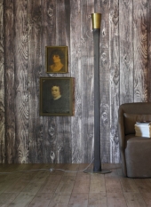 Une série complète de lampes noires, nées de l'idée simple d'habiller l'ampoule: un corps en bois massif et un abat-jour en métal coloré deviennent une source essentielle de lumière.