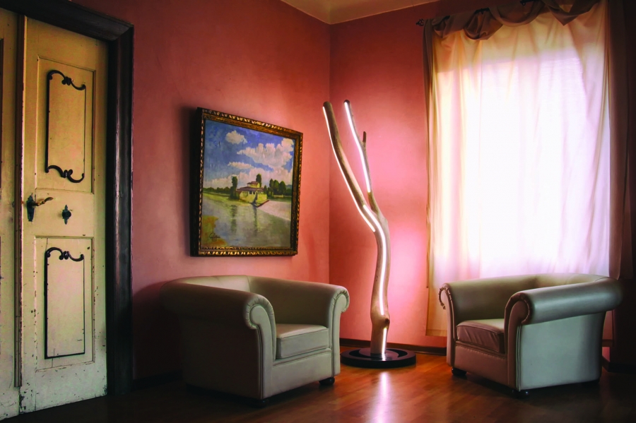 Ce sont des produits faits en utilisant troncs de bois de différentes formes, enlevés et choisis le long des bords des rivières et de torrents. Sont ajoutés des composants Led et matériaux comme: résines, aluminium et acier..