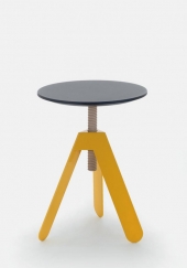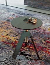La structure a trois jambes d’acier et le plan circulaire est de bois ou laqué. Sa particularité est le
