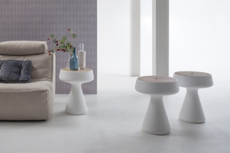 Maki est un pièce de mobilier polyvalente: Maki est une petite table circulaire, un tabouret, un conteneur et aussi un objet pour éclairer en version avec la lumière. Cette petite table circulaire, avec design simple et moderne, est aimé parce qu'il se prête à différentes solutions d'ameublement. Maki by Tonin.