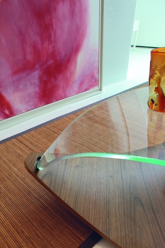 La couleur du bois et de l'élégance du verre courbé, rendent Quiet extrêmement original. Une technologie particulière appliquée à ces deux matériaux rend cette combinaison originale et caractéristique.