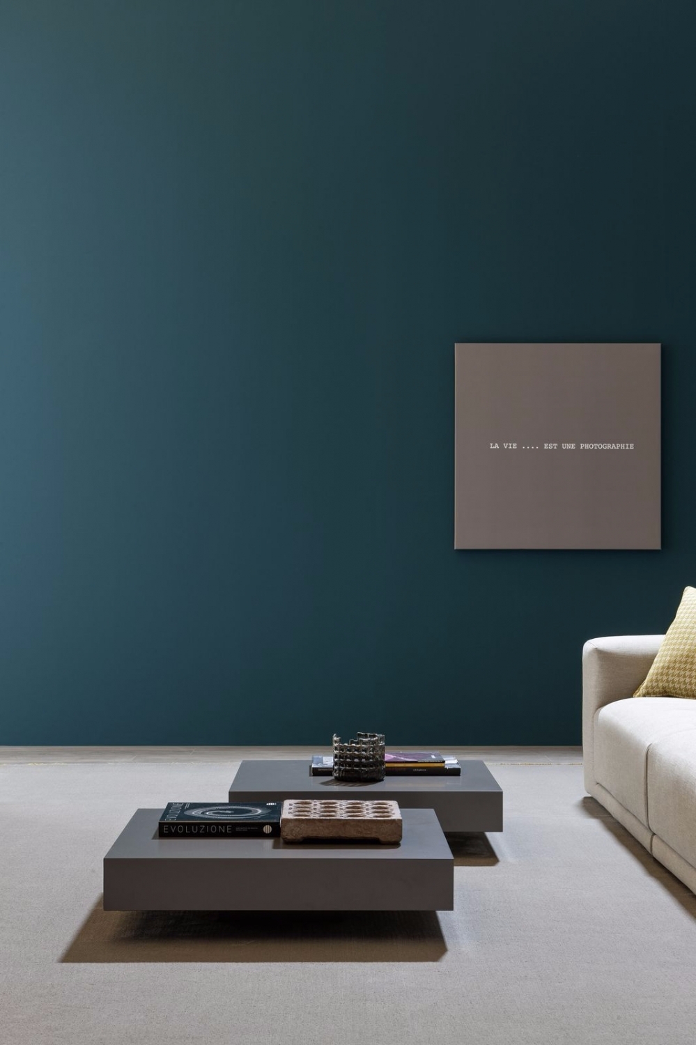 Shadows est une table basse en laqué mat se constituant d’un plateau épais monolithe posant sur un piètement. Sa forme simple et régulière dessine des ombres profondes sur le sol.