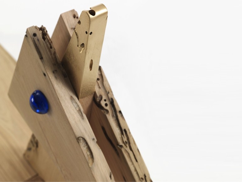 Quand il exerce sa fonction dans les eaux de Venise, le Briccola est un objet poétique et léger, qui se reflète dans l'eau dans une sorte de douce évanesence. Quand il a fini sa tâche principale, lorsqu'il est retiré de sa place pour être remplacé, le Briccola reste une longue perche à la terre, où l'usure et le temps ont rongé le bois créant une croûte rude et irrégulière. Mais ce bois a une grande histoire et c'est fascinant de vouloir le rapporter à la vie. Dans mon cas, je voulais obtenir une image douce, renversant la duretée du tronc. UNICORN, décliné sous diverses formes, est un tabouret à l'aspect ironique , comme un jouet porte bonheur. Un jouet en bois, justement, coupé de façon primordiale, comme le fit le menuisier Geppetto dans Pinocchio. Un jouet pour adultes, aux yeux bleus et ronds en verre de Murano, et la corne en bronze doré.