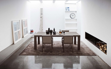 Link ist ein Tisch mit auf das Wesentliche beschränkter Linienführung, sauber und entschieden, mit klarer Persönlichkeit und starken Proportionen. Er ist in melaminbeschichtet-gemaserter Ausführung erhältlich.