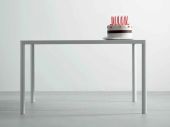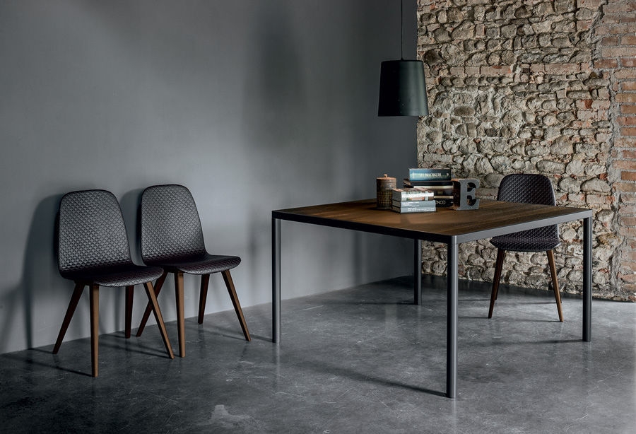 Table Max avec top en chêne traité thermiquement et structure carrée en noir laqué mat. Elle est disponible aussi dans la version rectangulaire.