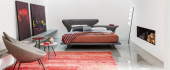 Les modèles de la série comprennent aussi Lovy Bed Ego, avec piqué de losanges, Lovy Bed Plus à effet capitonné et Lovy Bed Hi à tête de lit haute.