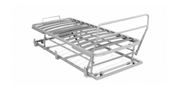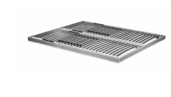Sommier à lattes avec structure en metal stucture en tube d’acier à section majorée. Plan d’appui